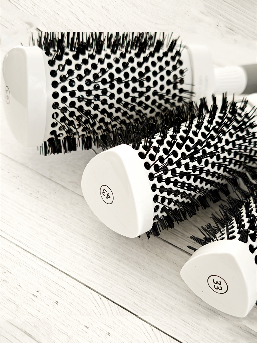 Керамические ионные термо-брашинги имеют мягкие щетинки, которые не царапают кожу головы, крупные отверстия в корпусе обеспечивают равномерный воздушный поток, легкие и сбалансированные с противоскользящими удобными ручками. .