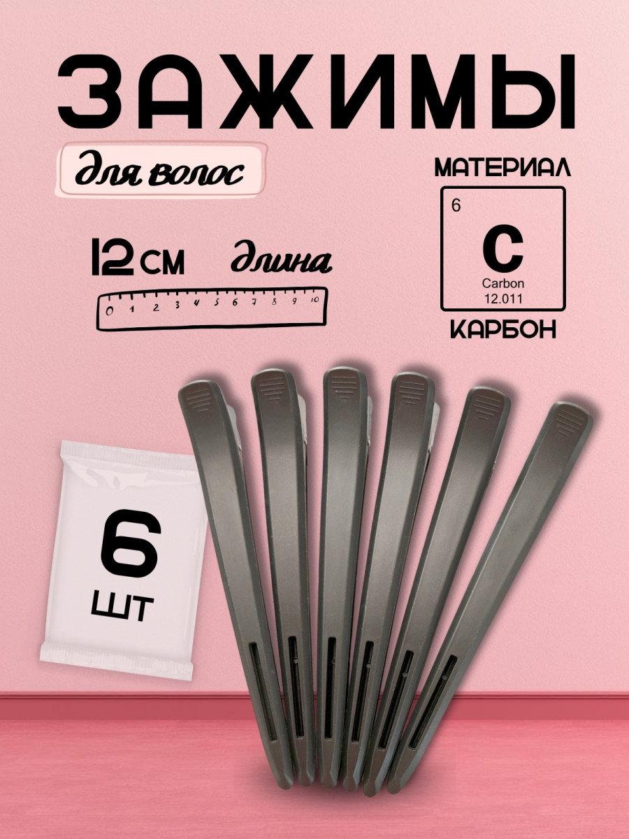 Зажимы "ECHO" арт.E-481Зажимы 6 шт в упаковке широкий карбон "ECHO"