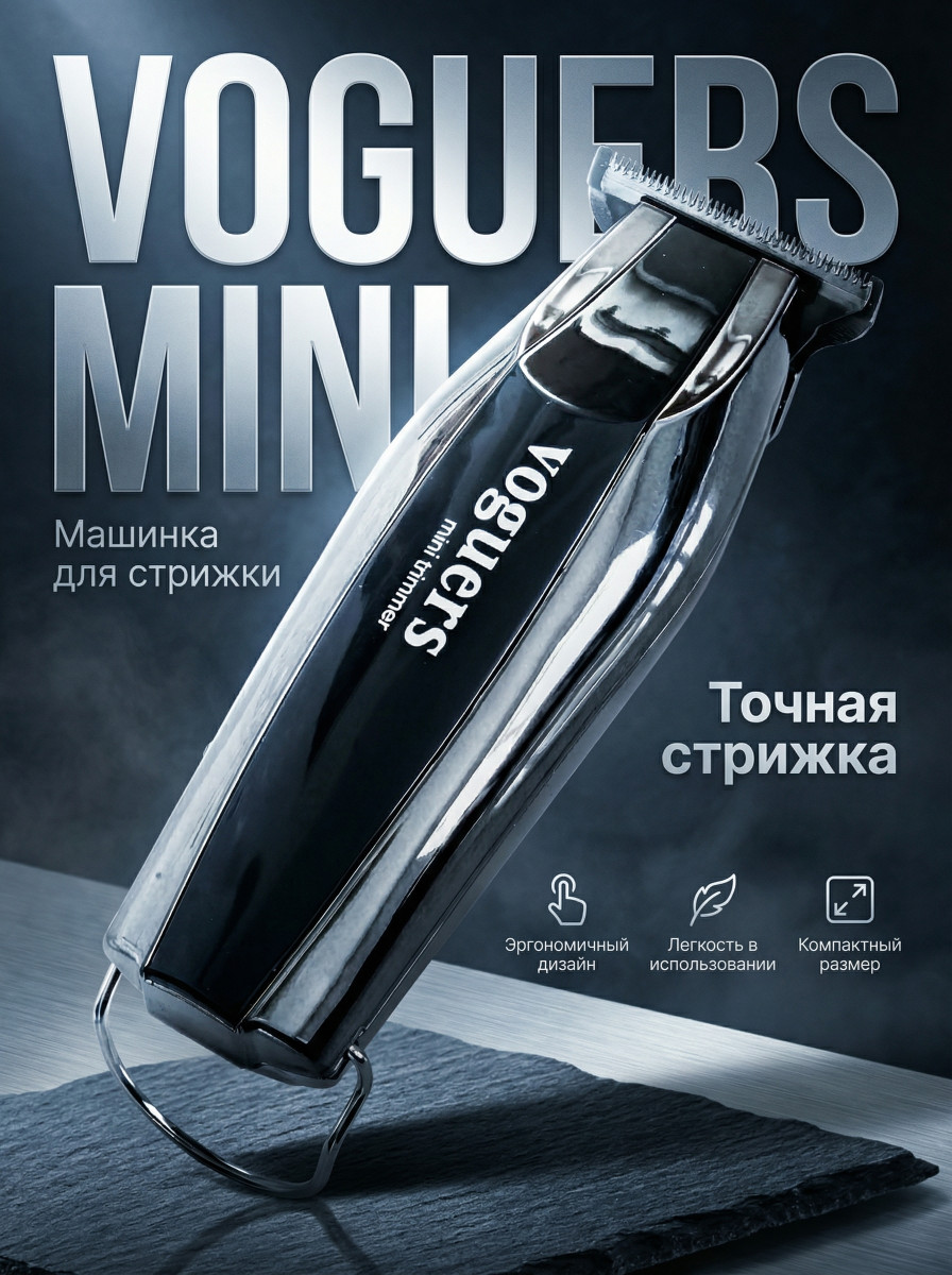 Машинки для стрижки mini trimmerОкантовочная машинка Voguers mini trimmer — это идеальный инструмент для создания аккуратных и стильных образов. Мощный DC 3.7v двигатель с высокой скоростью вращения (7000 об/мин) обеспечивает точную и быструю стрижку, а 3 насадки в комплекте позволяют добиться желаемой длины волос, от 0,1 мм до более длинных вариантов. Благодаря беспроводной работе и быстрой зарядке, вы сможете использовать машинку в любом месте, не беспокоясь о проводах. Индикация оставшегося времени работы поможет вам спланировать стрижку и избежать неожиданных остановок. Voguers mini trimmer — это надежный и удобный помощник для создания безупречного стиля как в домашних условиях, так и в профессиональном салоне.